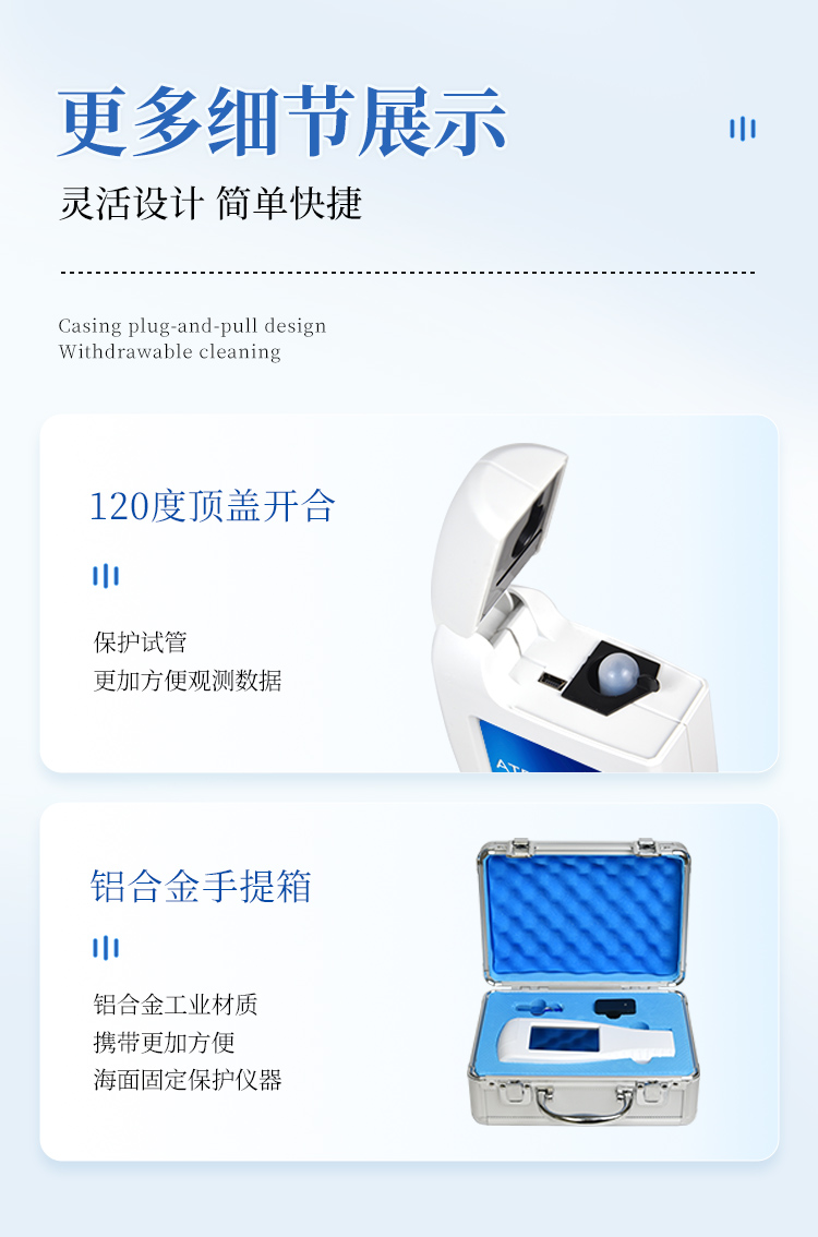 體驗(yàn)更好 —— 試子套管采用插拔式靈活設(shè)計,可定期清洗長期使用,延長儀器壽命。