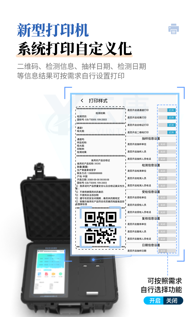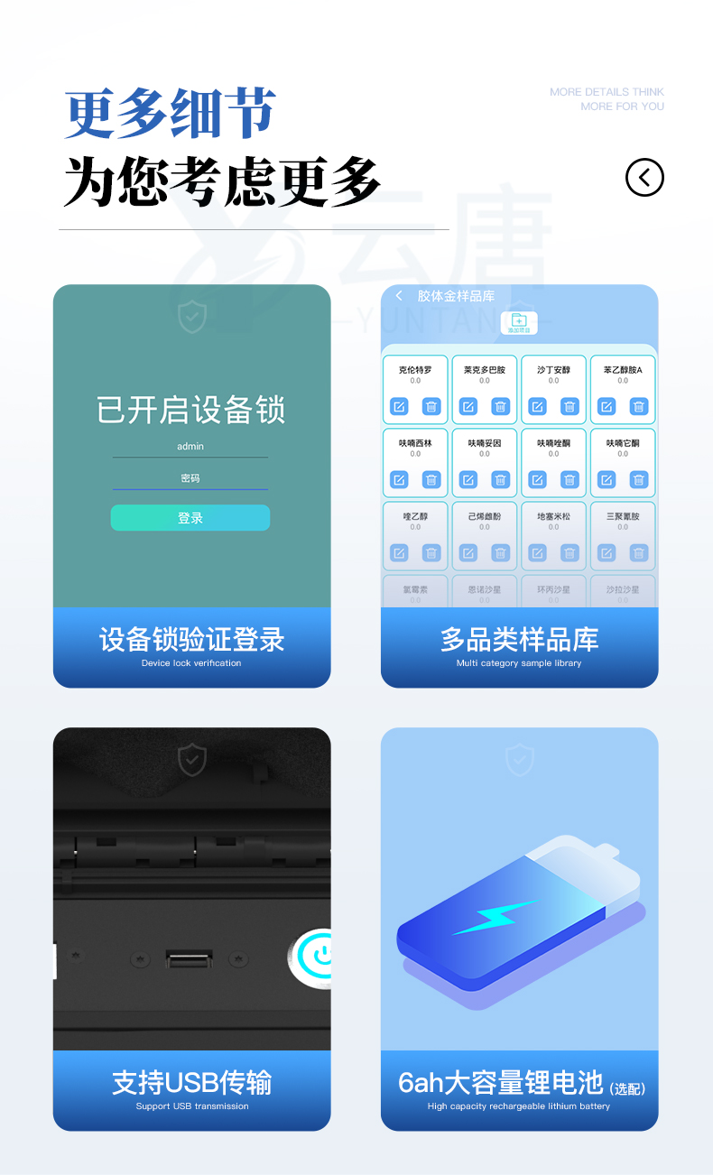 先咨詢優(yōu)惠福利,再購買,價格更便宜,更實惠。 在線咨詢 技術(shù)問題山東云唐智能科技有限公司生產(chǎn)的高智能食品安全檢測儀可快速檢測200多種食品安全項目,包含非食用化學(xué)物質(zhì)、濫用食品添加劑、農(nóng)藥殘留、獸藥殘留、重金屬、病害肉、營養(yǎng)強(qiáng)化劑、抗生素類殘留、激素類殘留、真菌毒素類殘留、化學(xué)類殘留等項目的定性定量檢測。