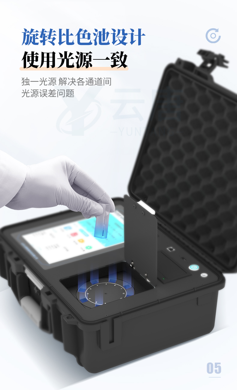 3.一體化便攜式快檢設(shè)備,采用交直流兩用供電方式,可連接車載電源,配備6ah大容量充電鋰電池,可以滿足現(xiàn)場及流動檢測使用的需求。儀器尺寸:43×35×20cm, 主機(jī)凈重:5.1kg