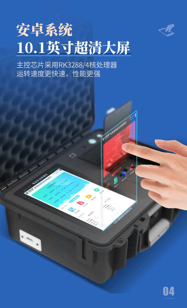 1、儀器采用10.1英寸液晶觸摸屏顯,搭配運行安卓智能操作系統(tǒng),主控芯片采用ARM Cortex-A7,RK3288/4核處理器,主頻1.88Ghz,運轉(zhuǎn)速度更快速,性能更強(qiáng)。