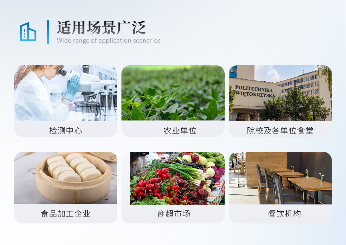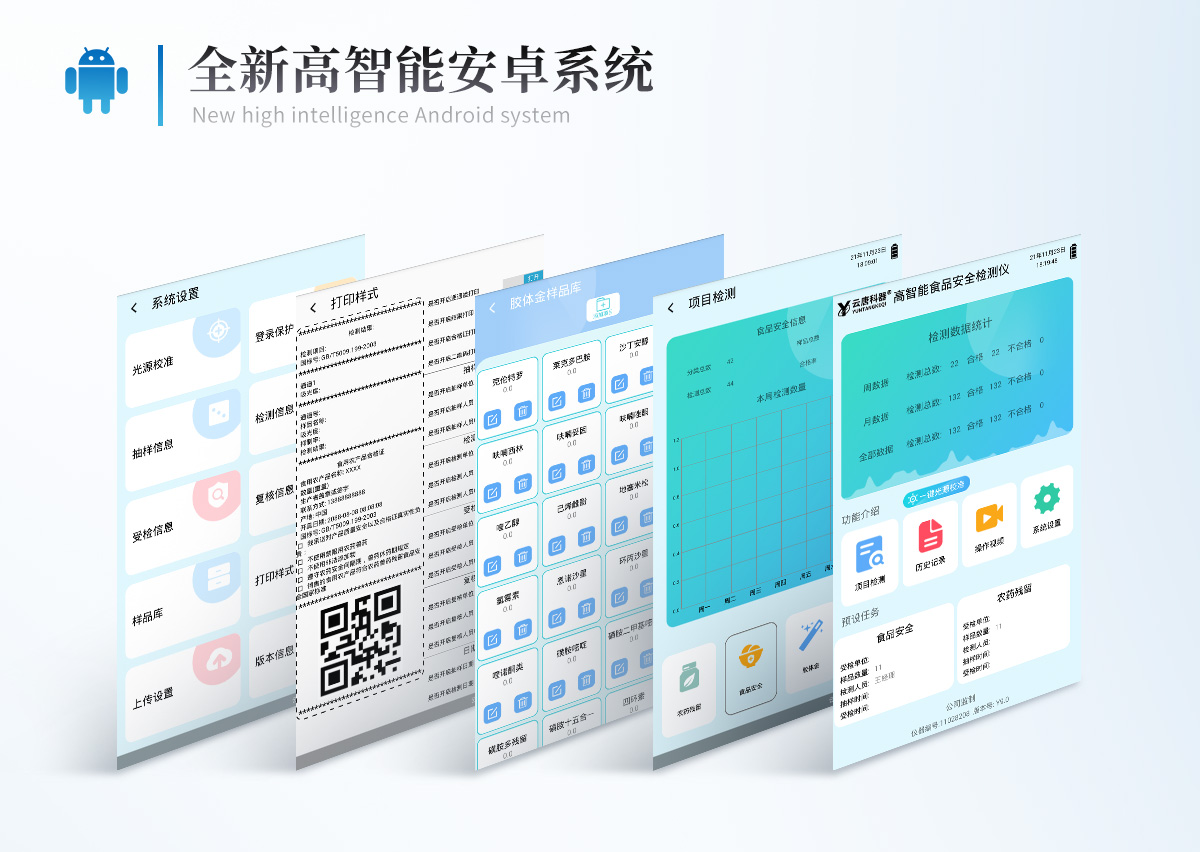 1、儀器采用手提式一體化系統(tǒng)檢測技術(shù),將分光光度模塊、膠體金檢測模塊、新型農(nóng)殘檢測模塊、數(shù)字化管理模塊、無線通訊模塊高度集成于一體,支持檢測200種食品安全檢測項(xiàng)目,同時預(yù)留升級檢測方法。