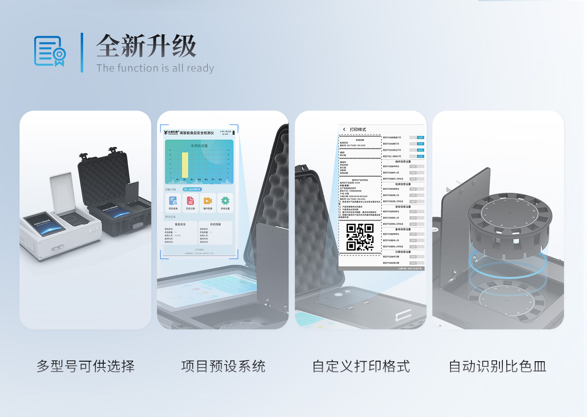 9.7、打印系統(tǒng):內(nèi)置全新打印機(jī),新創(chuàng)自定義打印方式,可按需靈活勾選控制:產(chǎn)品合格證(國家農(nóng)業(yè)部標(biāo)準(zhǔn)要求),二維碼,抽樣信息、檢測信息,受檢信息、復(fù)核信息、抽樣日期、檢測日期等信息的打印。