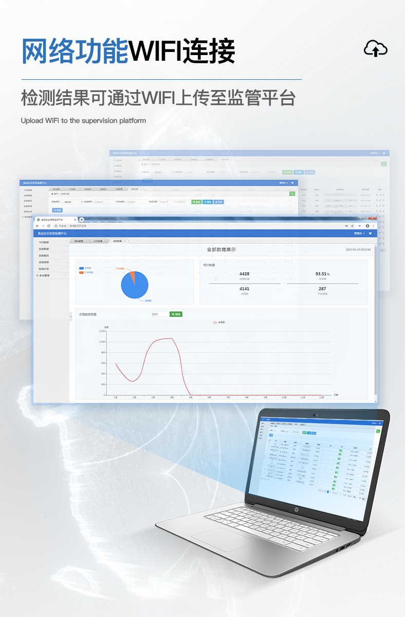 12、儀器具有 wifi 聯(lián)網(wǎng)上傳、RJ45網(wǎng)線連接功能,可以快速上傳數(shù)據(jù)。同步對(duì)接監(jiān)管平臺(tái),數(shù)據(jù)可局域網(wǎng)和互聯(lián)網(wǎng)數(shù)據(jù)上傳,檢測結(jié)果直接傳至食品安全監(jiān)管平臺(tái)。進(jìn)行區(qū)域食品安全監(jiān)管及大數(shù)據(jù)分析處理與數(shù)據(jù)統(tǒng)計(jì),檢測區(qū)域食品安全長短期動(dòng)態(tài),達(dá)到食品安全問題預(yù)估、預(yù)警。