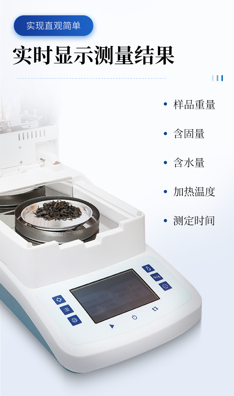 環(huán)狀的鹵素燈確保樣品得到均勻加熱,操作簡便、測量準確。鹵素水分測定儀在測量樣品重量的同時,儀器采用環(huán)形管鹵素加熱方式,快速干燥樣品,在干燥過程中,水分儀持續(xù)測量并即時顯示樣品丟失的水分含量%,干燥程序完成后,*終測定的水分含量值被鎖定顯示。與國際烘箱加熱法相比,鹵素加熱可以在高溫下將樣品均勻地快速干燥,樣品表面不易受損,其檢測結(jié)果與國標烘箱法具有良好的一致性,具有可替代性,且檢測效率遠遠高于烘箱法。智能化操作,一般樣品只需幾分鐘即可完成測定。該儀器操作簡單,測試準確,顯示部分采用液晶顯示屏-使屏幕更加清晰明亮,示值清晰可見,分別可顯示水分值,樣品初值,終值,測定時間,溫度初值,*終值等數(shù)據(jù),并具有與計算機,打印機連接功能、符合GLP規(guī)范的打印數(shù)據(jù)輸出。